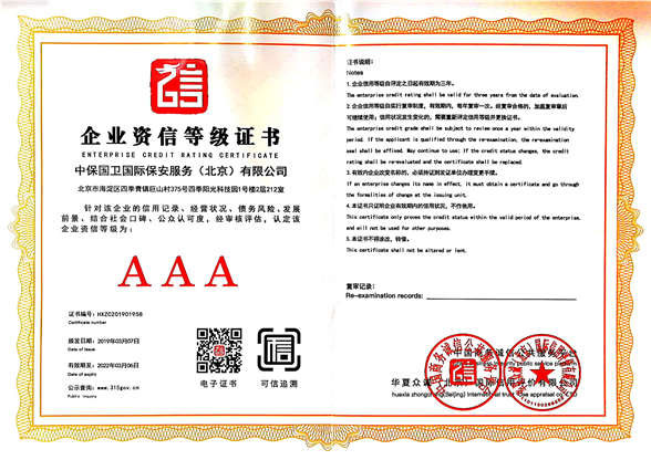 中保國衛國際保安服務(北京)有限公司,屬中保國衛集團旗下子公司。能全方位的為大型客戶提供優質的安保、押運服務,是集人防和技防于一體的新型正規化綜合安保押運服務企業,提供人防、物防、技防、聯網報*、非武裝押運等安防相關的一站式服務。